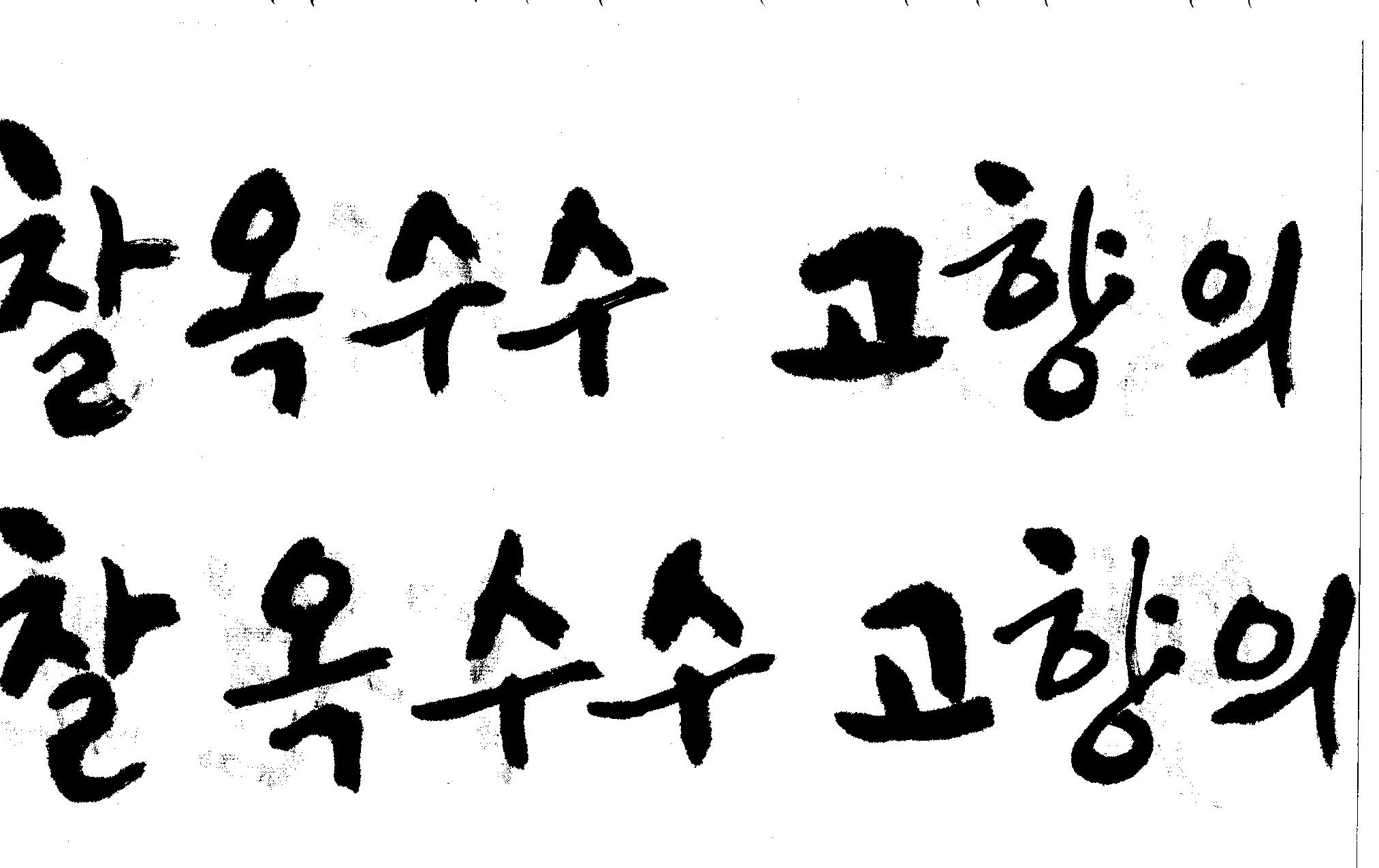캘리고수님.. 캘리 부탁드립니다. 김철호 일반 1 10913 2008.10.31 15:44 > > 강원도 > 찰옥수수 > 고향의 맛 > > 이상의 문구 입니다. > 캘리 고수님들 시간되시면 도움 부탁드립니다.. > 유용하게 쓰시길 , 스캔이 깨끗하지 못해서 수고 좀 하셔야 겠네요.. "맛"이 라는 글자가 잘 않나와서 따로 올립니다.